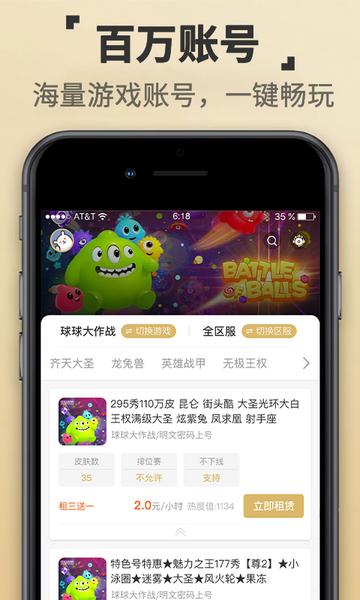 租一个是一款十分火爆的手机游戏工具软件,此软件上能为提供超多优质的游戏账号,你想要什么样子的都有,这里的游戏账号租赁买卖都支持,交易环境十分的安全,交易手续费非常的低,人工售后也是24小时都在线,感兴趣的可以来本站下载。