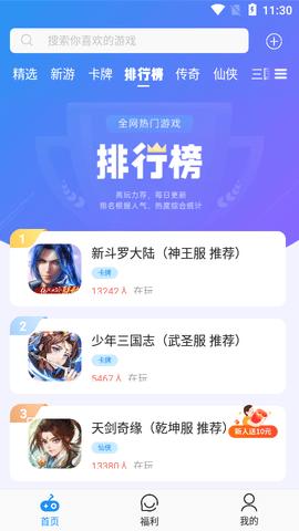 3、类型丰富:内含传奇,仙侠,策略,三国,休闲,魔幻,回合,挂机,卡牌等千余款福利游戏;
