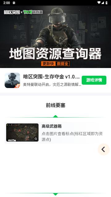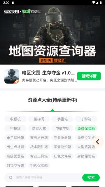 暗区突围地图资源查询是一款资源查询类工具,可在工具内查看所有地图对应的游戏资源点,更新快,数据全!