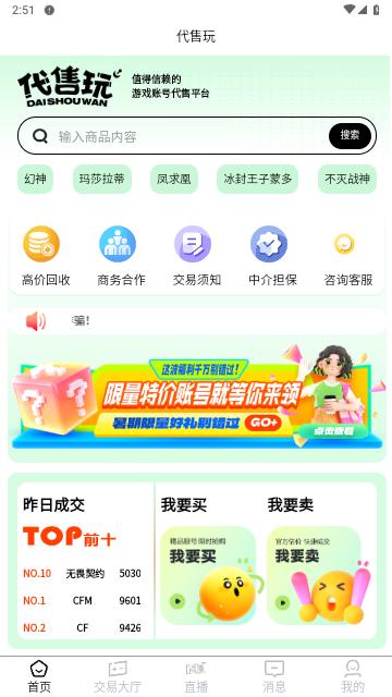 代售玩app通过不断完善用户体验、优化交易流程、避免安全隐患、提升服务质量,秉承客户至上的经营理念,满足用户需求。无论是国内游戏还是端游等,用户都可以随时随地购买或出售游戏商品,实现便捷的数字产品交易。需要的朋友们,快来下载吧。