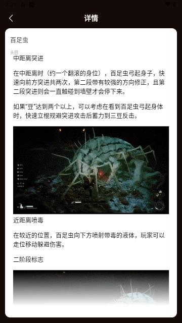 黑神话悟空妖魔精怪图鉴APP中所收录的妖精鬼怪是非常丰富的,而且每一个收录的boss、头目的技能介绍都是非常的详细,甚至还有着非常优质的打法技巧解析,来帮助大家来更好的理解和掌握其相关特性,从而来更好的应对boss。