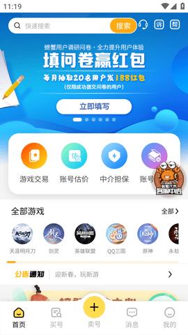 螃蟹交易平台官网版2024是一款能为广大网友用户们提供专业游戏交易服务的应用程序,通过该软件,用户能非常轻松的在线进行账号交易,而且这里有很多的热游账号,手游、端游等等账号都有,所有的账号都是经过测试了的,不会出现买了之后登不上去、被盗等情况,大家可以轻松的选择自己喜欢的游戏的账号,让你获得更好的游戏体验。所以有需要的朋友不妨下载体验一番哦。