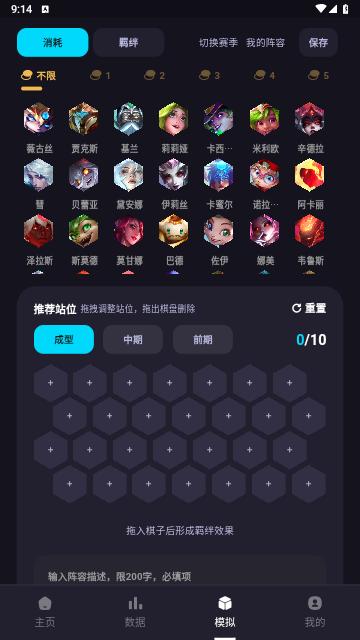 4、模拟阵容站位:模拟排兵布阵,组成羁绊,创建属于自己的阵容