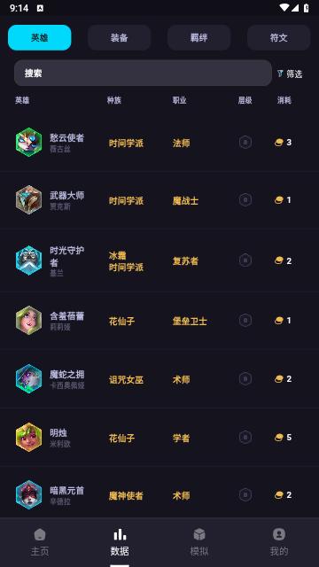3、游戏数据查询:英雄/装备/强化符文数据、评级,羁绊排行等各种查询一应俱全