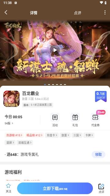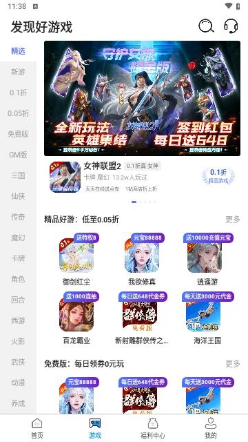 0.01折游戏盒App中汇集了超多热门题材游戏资源,仙侠、三国、传奇、角色、卡牌、回合、西游、养成、策略等类型游戏都有,分类非常详细,还有超多游戏福利可以免费领取到,超多优惠折扣带给大家,签到还有648代充券送给大家。