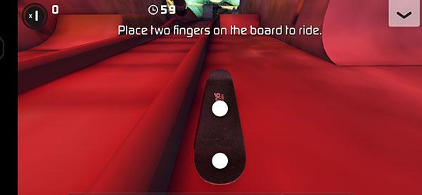 1、游戏的模式并不多,主要是教学、竞赛以及表演几个模式。虽然游戏中玩家只需要通过两根手指控制滑板,但是真正操作起来的难度非常高。本作最基础的操作是将两根手指前后放置到滑板上让滑板向前移动,放掉其中一根手指则是让滑板向一方倾斜来停下。游戏在这个最基本的操作基础上还加入了更加复杂的转弯、各种特技动作以及连续动作,而这一切都是基于玩家的两根手指。