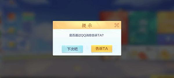3、再次点击召回位置,系统会弹出提示“是否通过qq消息告诉TA”,邀请ta一起加入游戏!