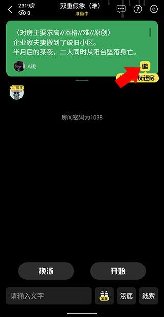 4、下方是创建房间成功截图,可邀请朋友加入房间,朋友也可通过房间密码加入房间,最低需两人才可开始游戏,当人数达到要求时点击下方“开始”即可。