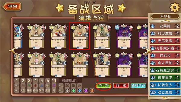 3、进入备战区域,玩家可以选择卡牌编辑卡组,选择卡牌后点击添加,完成后点击编辑完成。