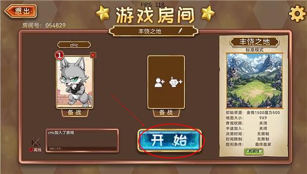 2、创建房间后,待其他玩家进入后即可点击开始按钮。