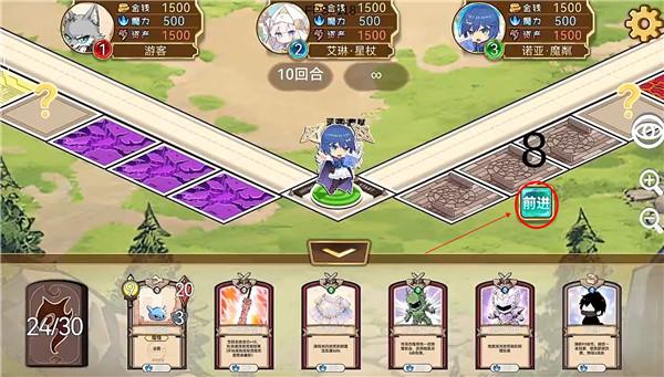 4、游戏中的号码会随意挑动,点击前进,即可根据相应的数字决定前进步伐。