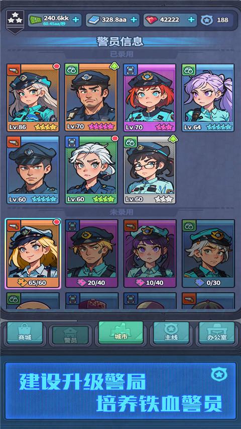 警局模拟器是一款非常好玩的模拟经营游戏,在游戏当中扮演和敌人对抗的正义使者,只需要通过不同的手段就可以把坏人全部抓捕,也可以对自己的警局进行不断的升级,拥有着不一样的角色,不管是学员腿队长还是高阶层的职位,都可以让玩家自由切换,玩游戏的时候玩家还可以检查行人是否有违规证件或者是带了违禁物品,帮助玩家检查巡逻车司机和交通违规者,玩游戏的时候没有任何的广告。