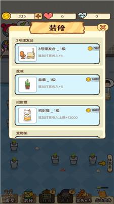 为玩家提供了一个装修系统,可以将理发店装饰的非常好看,随着自己的店面扩大,也能够吸引很多顾客前来理发。