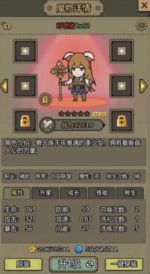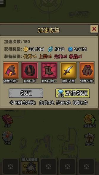 冲到差不多关卡的极限后把福利商店的5次金币广告都看了,然后选定猫耳娘或者矮人王当作升级主力,第一天酒馆养8个小时。