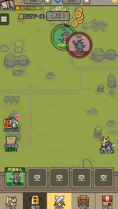 开局需要sl恶3蜘蛛子加恶3猫耳娘/恶3矮人王都可以。然后开局了快速冲关,第一天最好能冲上250关,前期的流浪商人可以把刷新次数都用到装备商人那里,抽到几个好装备对冲关帮助很大。