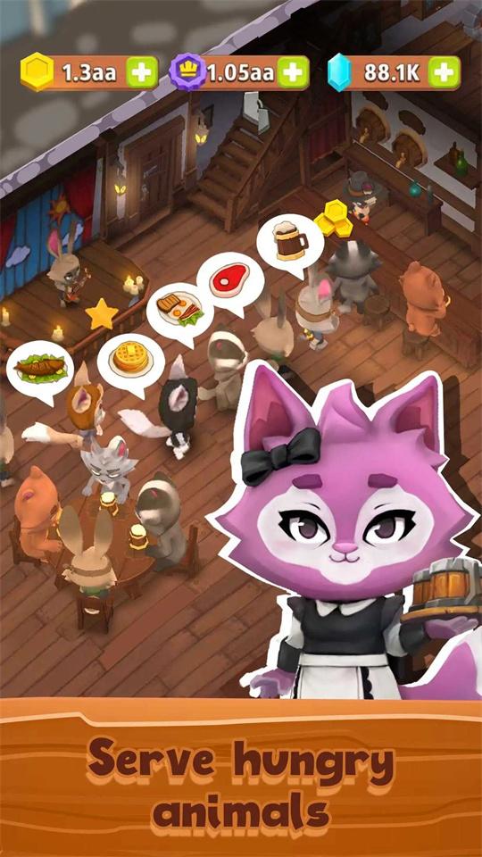 动物酒馆中世纪大亨是一款十分富有经营乐趣的模拟经营类型手机游戏,在这个游戏里,玩家扮演的是一个酒馆老板的身份,玩家必须负责经营好自己的酒馆,让自己的酒馆能够更好的发展,在游戏里,玩家会遇到非常多的经营困难,玩家一定要更好的挑战困难,为自己赚取更多的钱财,在游戏当中,所有的顾客都是动物的角色,每一个动物都有着不同的喜好和品味,玩家一定要根据前来的顾客的品味为他推荐菜品,这样子才能够让顾客给予自己更多的好评。