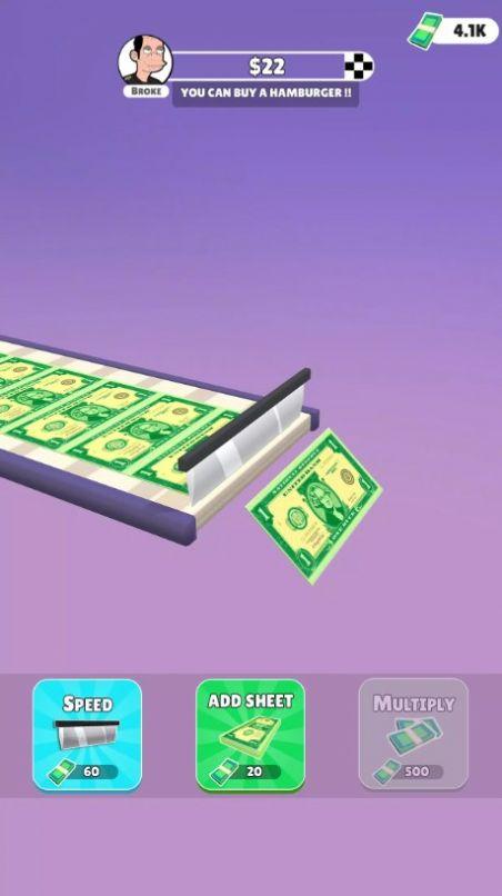 1、玩家需要升级的印钞机,你可以按照目标制作出来不同的钞票。