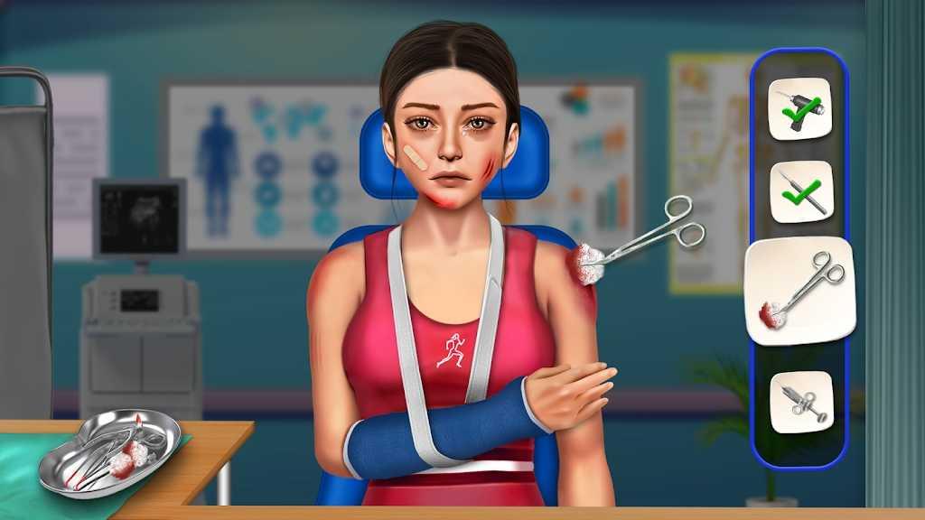 在每一关卡中,你都会遇见有外伤的患者,那么这时你可以使用不同的医疗器械,对他们进行处理,比如说对伤口进行消毒,用持针器对伤口进行缝合等等,这些操作看似非常的简单,但是实际上还需要掌握一定的技巧,否则你所处理过的伤口,会出现意想不到的情况。