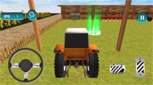 3.可以调整拖拉机前进的方向以及速度,同时还有刹车和油门可以选择。