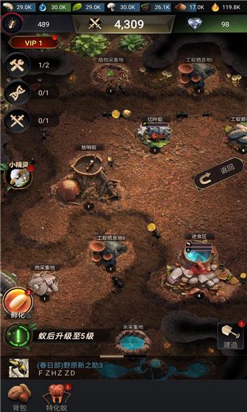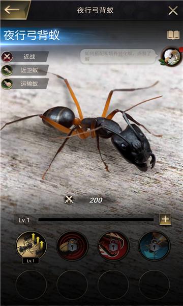 4.培育蚁群:玩家可以培育不同类型的蚂蚁,如工蚁、战士蚁等,让它们各司其职,共同为王国发展贡献力量。