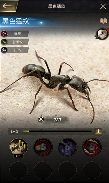 1.逼真的3D场景:游戏采用了最先进的3D技术,打造出逼真的蚂蚁王国,让玩家身临其境。