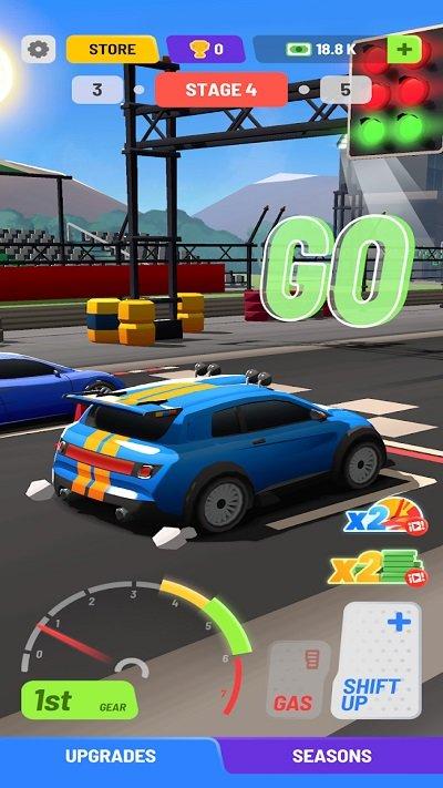 *多种游戏进展和奖励系统,通过不断比赛和挑战,提升赛车实力和等级,解锁新的赛车和道具。