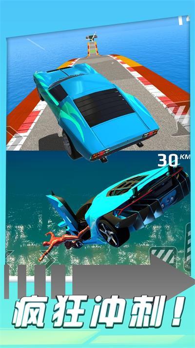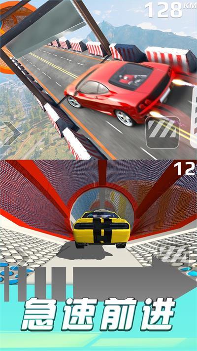 3)丰富多样的特技场景,玩家可以在高空中进行180度漂移、翻滚、飞跃等惊险动作,感受到真正的赛车特技快感。