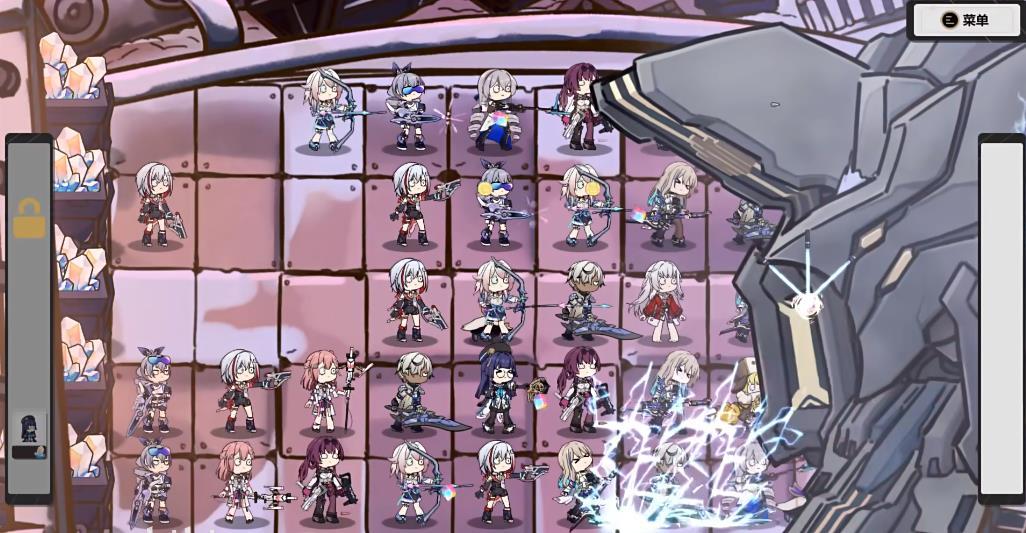 第六列帕姆放完就在第三列放帕姆,有星琼够了就优先放鸭鸭,放够九个帕姆了剩下的格子就全放鸭鸭,从左到右把格子全部扑满,扑满了你就可以挂机干别的事了,第三关也这样过。
