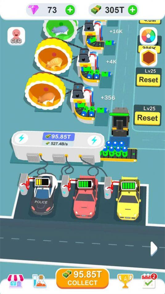 3.玩家可以建立各种充电桩,对各种车辆进行充电,获得更好的游戏收益和奖励。