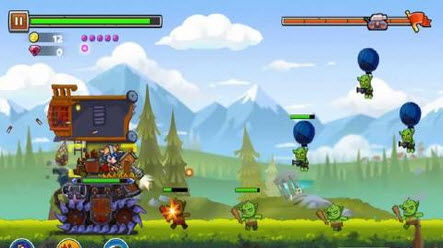 游戏融合了即时战略、塔防和横向卷轴射击玩法,射击可以自动瞄准也可以手动瞄准。