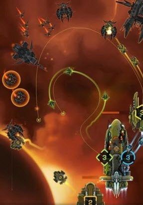 一款策略对战游戏,玩家需要指挥自己的舰队来消灭敌舰,首先需要为每艘战舰指定战斗机的飞行路线,然后飞船就会一直按照路线来回飞行,直到路线改变。当自己的船跟敌船接触上的时候就会开火,但是不会在击败敌船后再返回,同时还可以双击敌舰来指挥巡航导弹攻击。