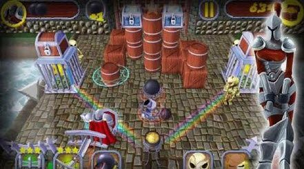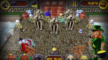 骷髅战士阻挡了英雄前进的道路,他们制作了不同结构的木盒子,你需要用铁球来撞碎木箱子获得金币才能过关。