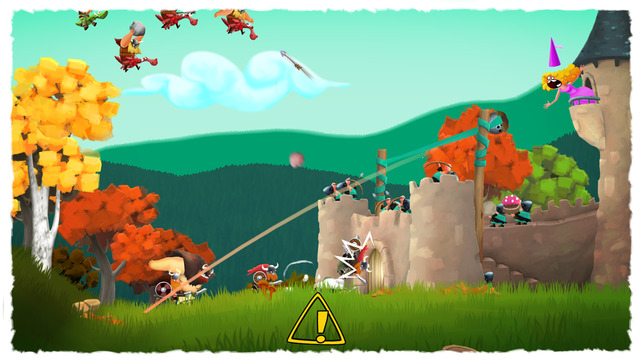 游戏里有一群饥渴的海盗要去抢夺某个城堡的公主,而玩家就要担负起保护公主抵挡维京人的重任。玩家主要可以用弓箭、投石机来击杀前来攻击城门的海盗,从核心玩法看,可以说是《愤怒的小鸟》的变种,但这次变身实在太华丽了。首先这是一场消耗战,维京人为架设起各种防御工事并躲在他们后面步步紧逼,玩家则要有节奏的利用手上的资源发动进攻——注意是有节奏,因为如果你打得太快,城堡里的小兵会提醒你没有石头啦,只能扔西红柿和皮球啦,当然这些东西是不可能有什么杀伤力的啦。
