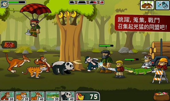 只有在不能呼吸到新鲜空气的时候,才格外体会到“保护环境”的重要性。今天这款首免的游戏,玩家就需要扮演森林的守护者小猴子们去打败满脸凶残的伐木工人。虽然游戏可以归类到塔防,但却不是严格意义上的造塔防御的经典模式,玩法很有新意。