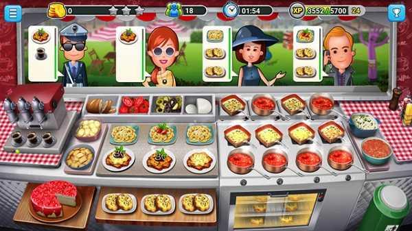 7、其中咖啡机会自动加满咖啡,而意大利面则需要你分别加热红酱和白酱,另外随着你等级的提高,各种不同的食材以及蒜蓉面包和奶酪蛋糕等甜品也将逐一解锁,从而让你餐车经营的品种变得更加丰富,以便能够吸引更多的客人来光顾。