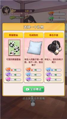 能给角色赠送可爱的礼物,可通过选盲盒的方式来挑选礼物的类型,有多种的互动模式,不管是进行交流或者是进行约会都可尝试。