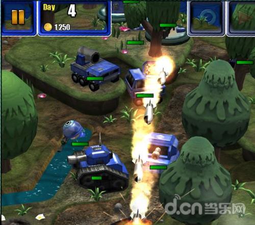 游戏操作上,玩家可以选择红蓝两种不同的阵营开始对战,与传统RTS(即时战略)类似,游戏中兵种相生相克,因此十分讲究战略性,并不是一味追求高价格的兵种。而且兵种类型十分丰富,从截图中我们可以看到各种战车坦克,直升机,另外还有战船等军队武装力量,简直是海陆空作战的完美演绎!