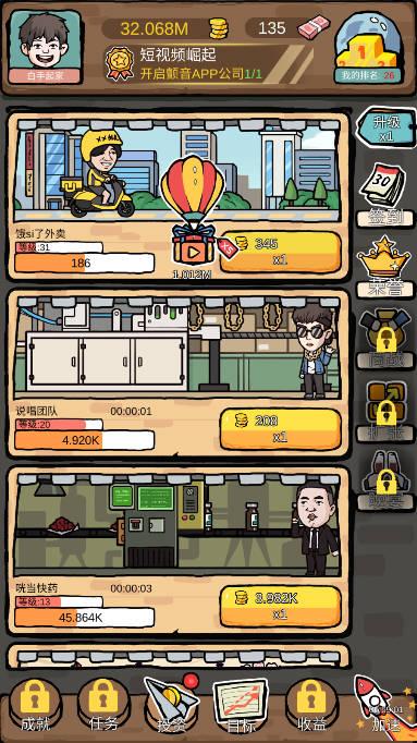 1.一个轻松的放置挂机游戏,创立自己的公司集团。