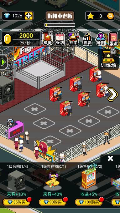 2.游戏能够购买非常多不同种类的街机,购买这些街机然后招引更多的顾客前来玩耍