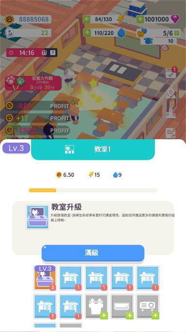 3、可以对学院中的建筑物进行升级,升级今后可以包容更多的学生并且设备也会随之升级。