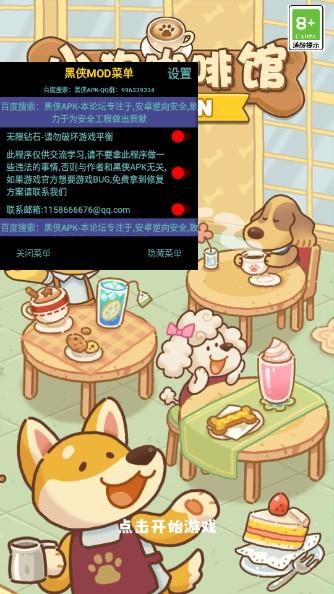 小狗咖啡馆无限钻石黑侠MOD菜单是一个已经增加内置菜单的小狗咖啡馆,让你在游玩的时候更加顺心,因为已经解锁了无限钻石,可以让你在游戏中解锁任意道具,游戏非常好玩,需要卸载手机上的taptap。