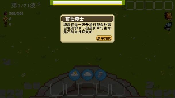 这款游戏不仅仅有酷炫的战斗场面,还有多种的人物角色机制,所谓人物就是玩家在通过关卡后会出现三个角色,玩家可以与三个角色互动进行交易,这三个角色分别是恶魔人、天使骑士、普通村长,与恶魔人交易的代价是扣除当前城墙的部分血量,与天使骑士和村长交易则需付出一定数量的货币,在交易过后玩家不仅仅可以获得新的技能,还可以得到新的天气卡片,天气卡片的作用则是在战斗时可以召唤天气灾害帮我们去击退敌方的怪物,虽然说天气卡片的作用并不是最大的,但是在危机时刻却能够扭转战局。游戏中所添加的这些新的元素都能使玩家在游玩过程中能有一种全新的体验,这些也能够增加玩家的游玩舒适度