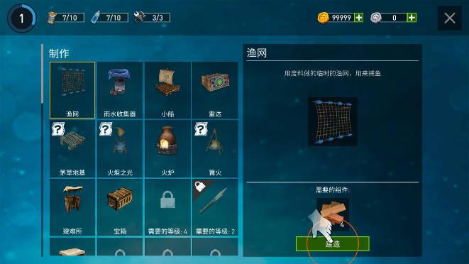 3.不断搜集资料,在船尾放置上一些搜集道具用的渔网,烹饪台和净水器都预备两个基本上就够用了。然后就能够开端进行造船大业。