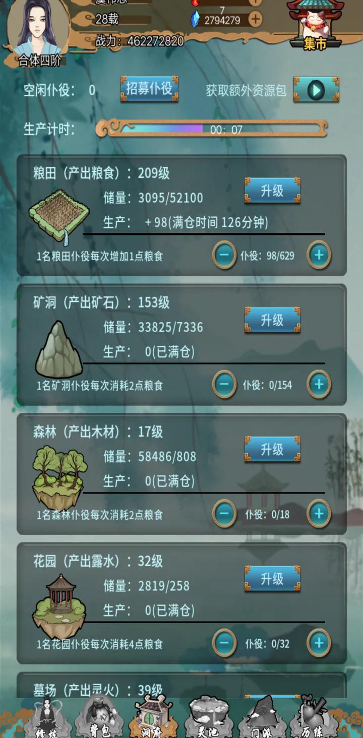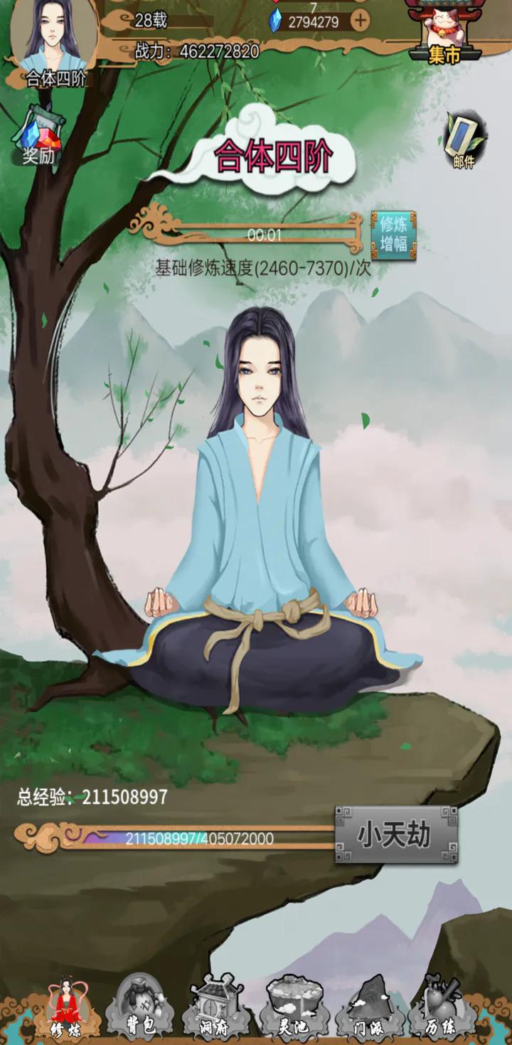 2、经过与侍妾双修,即可生出孩子,孩子生长之后与其他用户联婚,便可添加用户属性,协助用户修仙;
