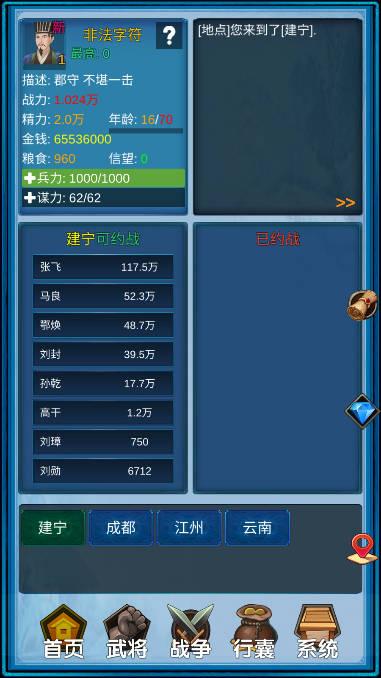 请量力而为,约战战力较低的武将,以在下一轮打败他,取得金钱、装备、兵书.