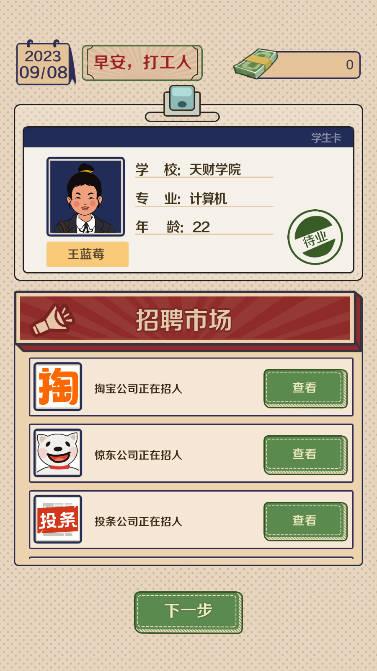 这是一款模拟打工人找工作在职场的游戏,简单有趣的文字选择对话玩法,在这里选择你的选项,然后不断地升级,成为总经理,非常经典的游戏内容和人物玩法,比较解压的游戏内容。