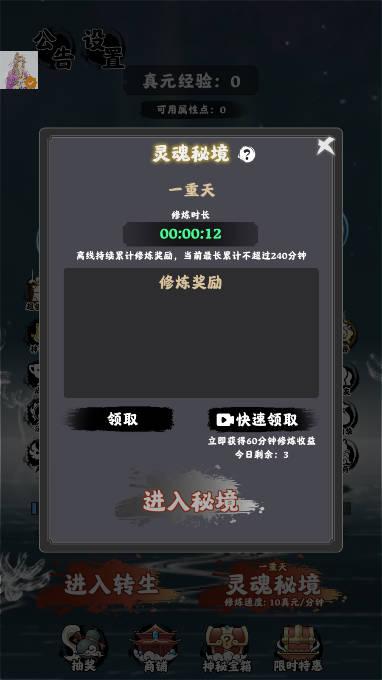 这是一款全新上线的修仙玩法游戏,在这里面加入了非常多的玩法和体验,你可以不断地冒险,升级自己的属性,加入了免广告和无限获得宝箱的mod菜单玩法,修改更多的属性!