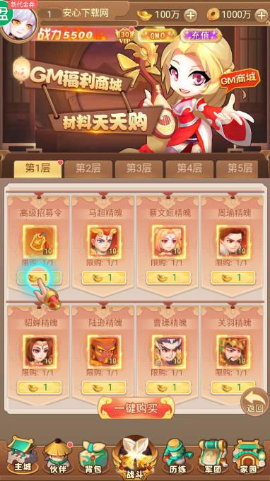 4.武将商店。武将商店中售卖的物品都是关于武将的合成、进阶、飞升等资源,其中武将碎片最低品质是橙将,这点还是比较良心的。每次购买会有数量和种类限制,但每天都有免费刷新次数。日积月累拿到自己想要的武将,也是一个可以接受的途径。
