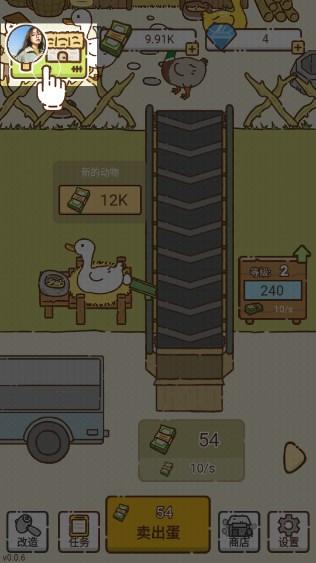 从一个小工厂开始,鸭蛋会被包装并出售,赚取收入。用这笔钱升级生产线,购买新设备。等级越高,下蛋的速度越快,卖出的价格也越高。你还可以解锁新的生产线来生产不同的鸭蛋。