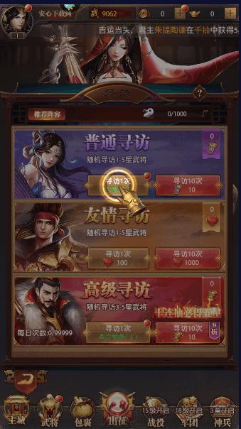 5、优化了【摸金校尉】【游牧草原】战斗增加跳过功能,逢10层的关键关卡将不可跳过,但可使用速战功能。